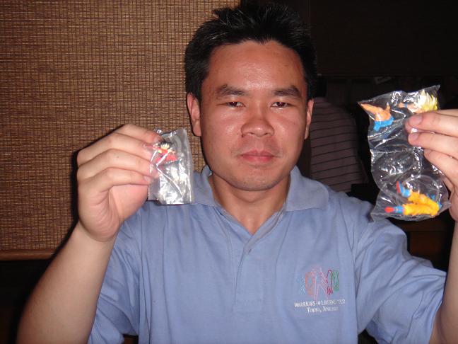 bunch of his toys with him, to the amusement of some Japanese who stood nearby