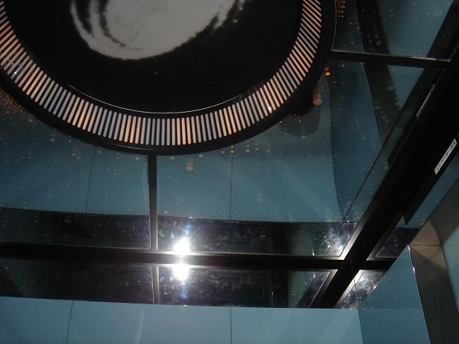 "egg-shaped" elevator that shoots you up at incredible speeds; from the first